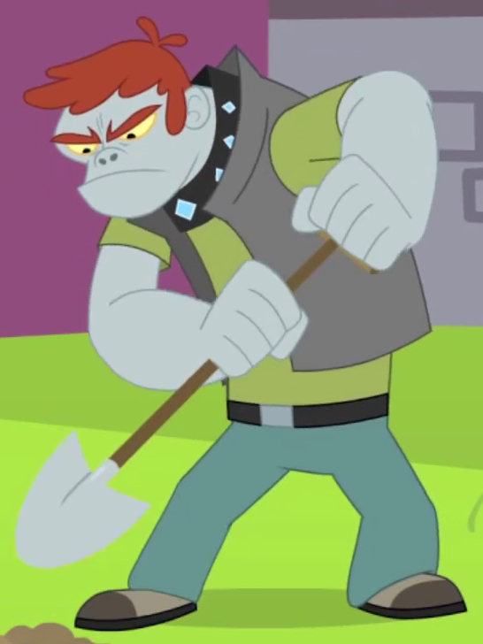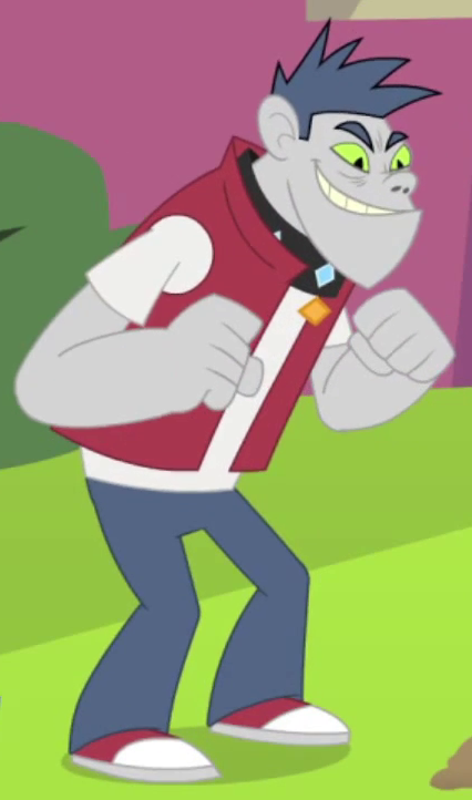 At Rarity's request, the boys carry the piano to the band room, going so far as barreling through a dense gathering of students to get there. The boys watch as Rarity plays the keytar and, in the end, carry the piano for her once again to the school gym.
