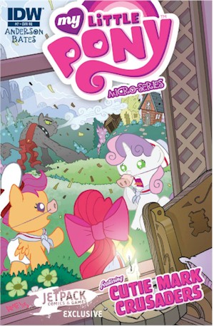 Of My Little Pony Micro-Series Issue #7, Rover appears both on a Jetpack Comics exclusive cover RE and on the back of a Larry's Comics and Jetpack Comics exclusive wrap cover RE.