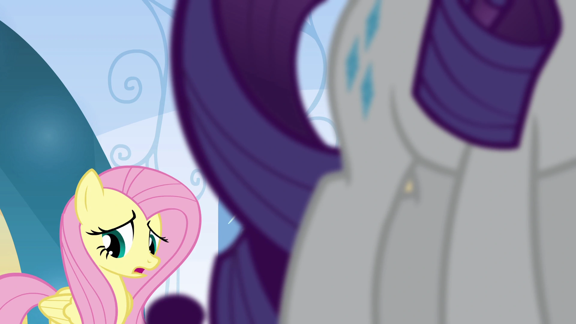 Throughout the episode, Fluttershy silently endures the attention she receives from her fans. Though unhappy with her stressful and disquieting status as Photo Finish's model, she willingly accepts her fate so as to grant Rarity's wishes for Fluttershy not to fail Photo Finish. She, however, is unaware of Rarity's growing jealousy towards her until the very end.