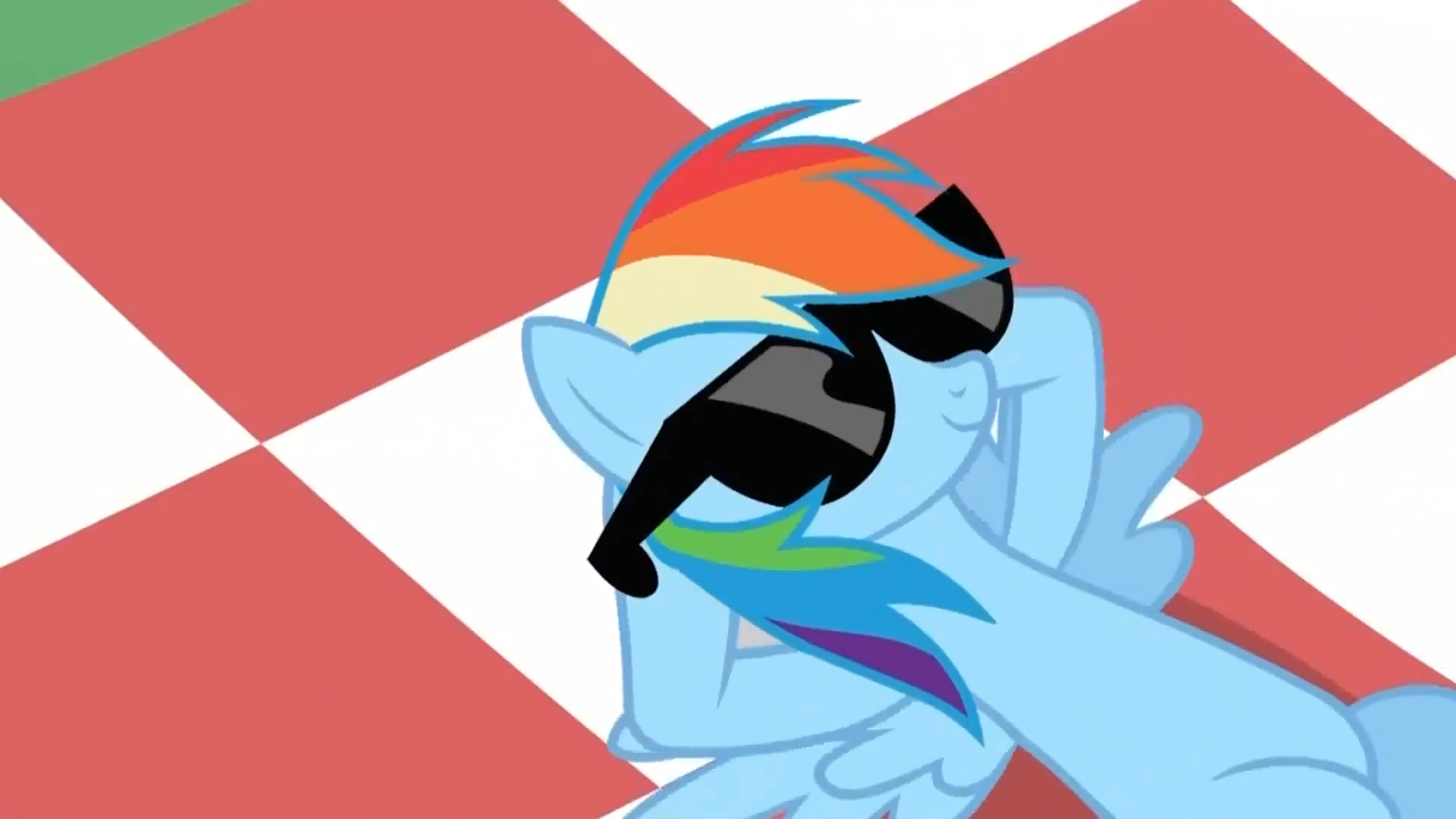 Rainbow Dash displays confidence in herself and her physical abilities in multiple episodes. In Boast Busters, when Applejack and Rarity criticize Trixie for showing off magic tricks and looking down on other ponies, Rainbow Dash adds, "Especially when ya got me around being better than the rest of us."