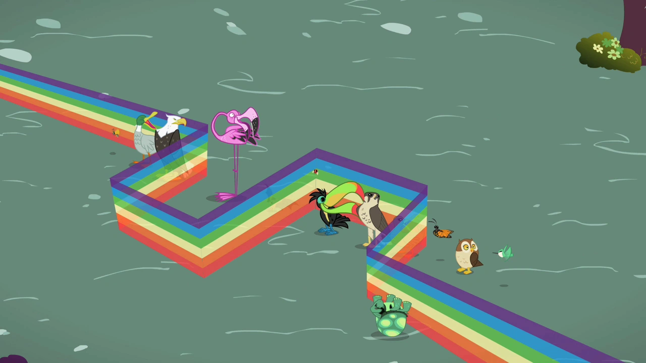 At the end of May the Best Pet Win!, Tank is fitted with a propeller and flight goggles so he can fly and keep up with Rainbow Dash. Rainbow maintains a mostly professional attitude about him around others and is embarrassed when he displays affection towards her in Just for Sidekicks. Despite this, she reciprocates Tank's affection in the same episode but only does so when no one else is looking.
