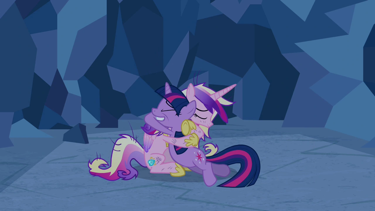 Twilight and Cadance hugging.